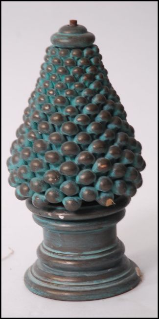 An unusual 1970's pair of ceramic lights of tapering two part form having ball finish over circular plinths. 35cm high