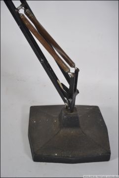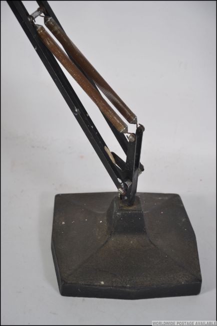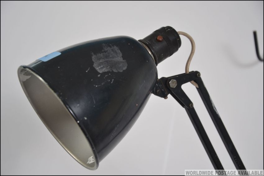 An original pre-war early 20th century Herbert Terry model 1209 large Industrial anglepoise desk lamp. The large cast base being ebonised with bell pendant shade. The arm marked for Herbert Terry.