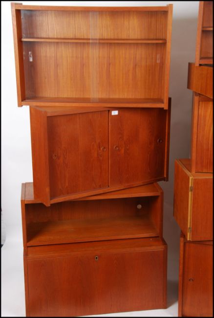 A superb 1970's retro Swedish PS system of modular form comprising cabinets and shelves complete with the brackets