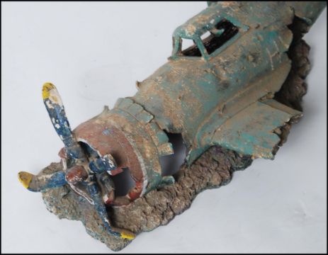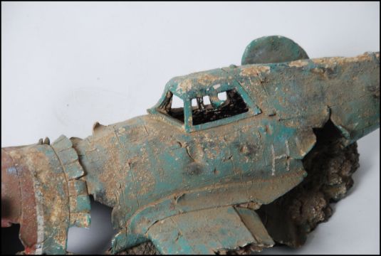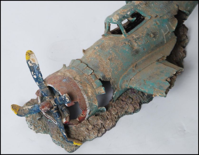 A large unusual resin cast model of an underwater crashed - relic world war 2 aeroplane ( see illustrations ) Measures 64cms long x 24cms high at tail