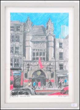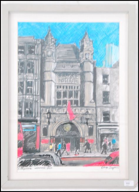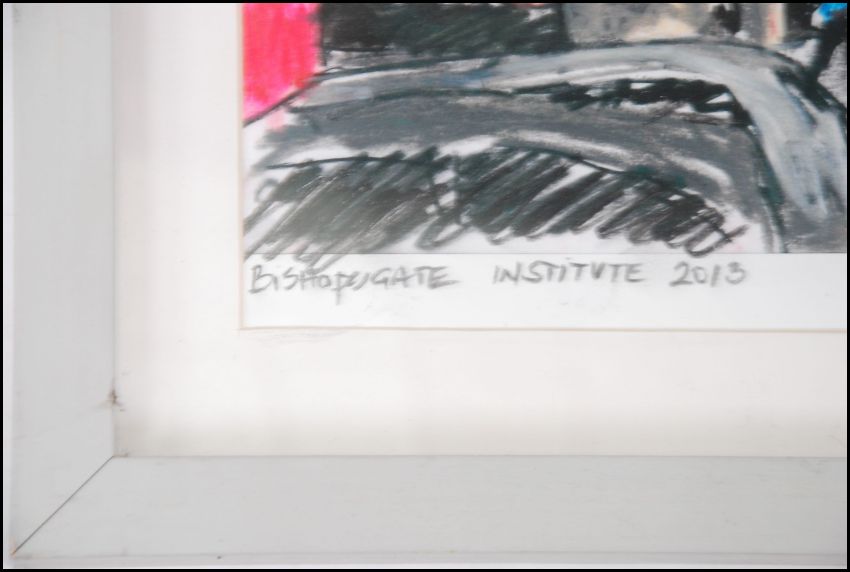 Chris Dyson - Bishopgate institute. Mixed media painting being signed by the artist, framed and glazed