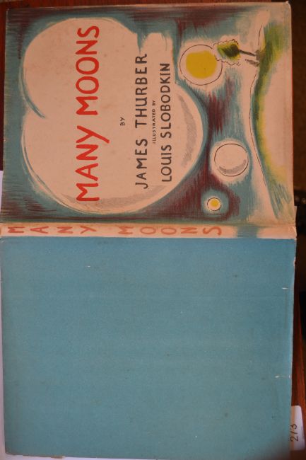 ' Many Moons. ' Thurber, James. Illustrated throughout in colour by Louis Slobodkin. Hamish Hamilton, London. 1944. Original red cloth binding with colour pictorial dust jacket.