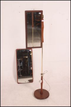 2 frameless mirrors on teak backs , both retro vintage mid century along with a teak and brass standard lamp. 150cm high x 31cm wide diameter
