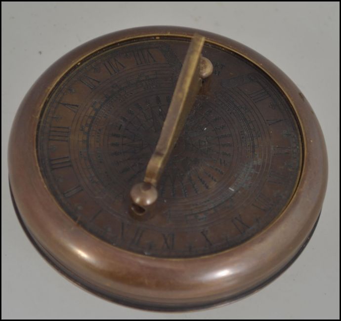 A brass cased compass and sundial stamped Gilbert W7cm