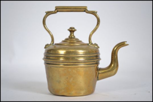 A Victorian miniature brass kettle compete with lid, possibly an apprentice piece. H12cm