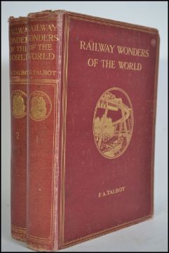 RAILWAY WONDERS OF THE WORLD; Talbot, EA. Illustrated in black and white and colour. Pub; Cassell & Co, London. Date unknown. Assumed First Edition. Two volumes. Gilt titles and motifs.