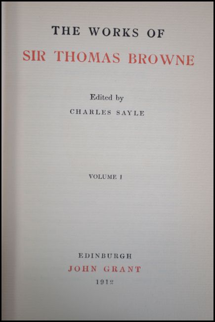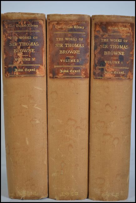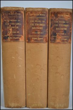 The Works Of Sir Thomas Browne (3 volumes). Edited by Sir Charles Sayle. Pub; John Grant, Edinburgh, 1912. 1/2 cloth with paper binding.