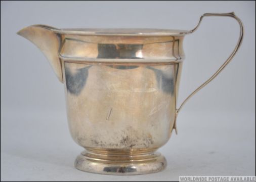 A silver hallmarked creamer jug bearing marks for Edward Viner, Sheffield 1947. Total weight 106.5g. Measures: 9cms high.
