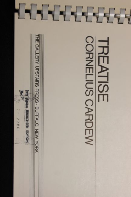 Treatise: Cornelius Cardew; Published by The Gallery Upstairs Press, Buffalo NY (1967) First Edition. 194 pages, without words, of a graphic music score written in the mid-60s and very much in the "mainstream" of experimental music at that time. It has been performed, but since each performance is unique because it depends on the interpretation of the players, no one really knows what it's supposed to sound like, including Cardew (who died in 1981).