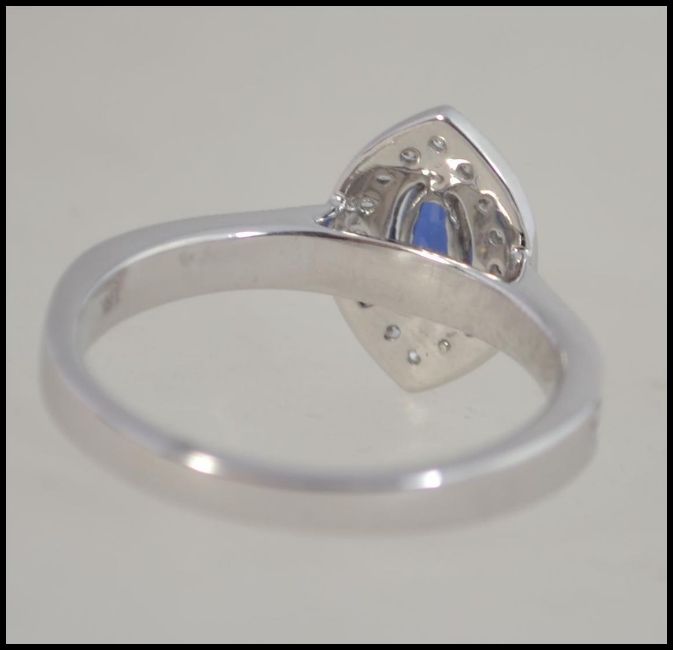 An 18ct white gold sapphire and diamond ring. Ring is marked 750 and has approx 1 ct of diamonds 3.8g