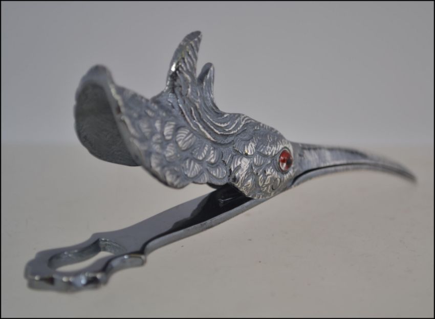 A silver plated clip in the form of a water bird with glass bead eyes W13cm