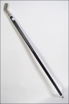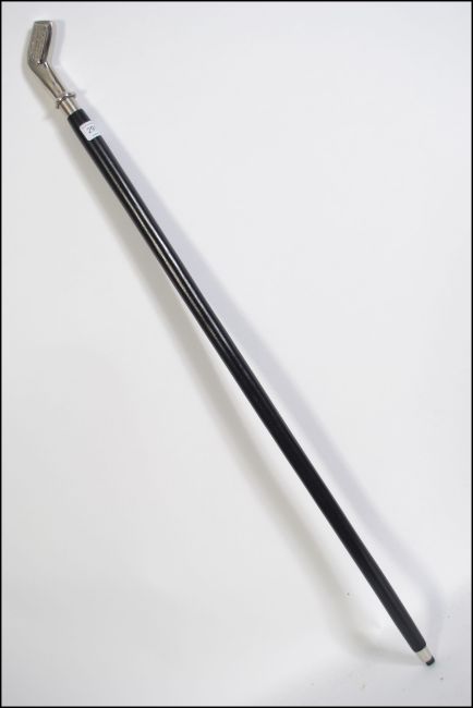 An ebonised walking cane with a silver plated in the shape of a golf club L96cm