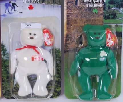 A full set of TY Beanie Babies Ronald McDonald issued bears - all carded and sealed. x4.
