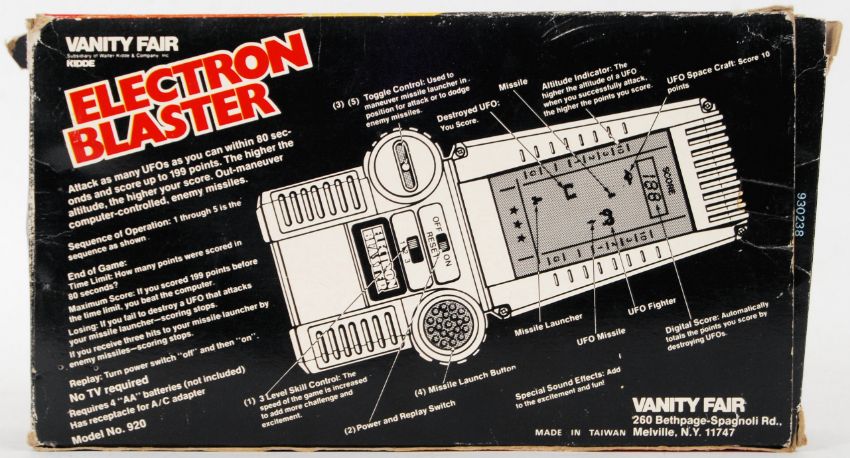 An original vintage Vanity Fair made electronic games console Electron Blaster. Within the original box