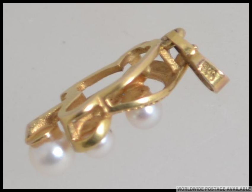 A 9ct gold and seed pearl necklace pendant approx 20mm in length. Weight 1.0g