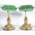 A pair of 20th century bankers desk lamp having a green glass shade being raised on a brass stands with terraced bases. Measures 35cm high.