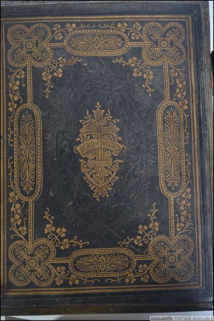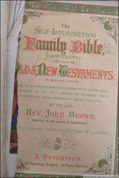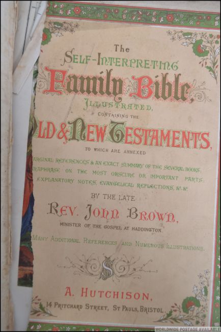 A pair of family bibles the first being a National family bible from 1918 with brass clasps, the other being a John Brown Holy Bible of a similar age