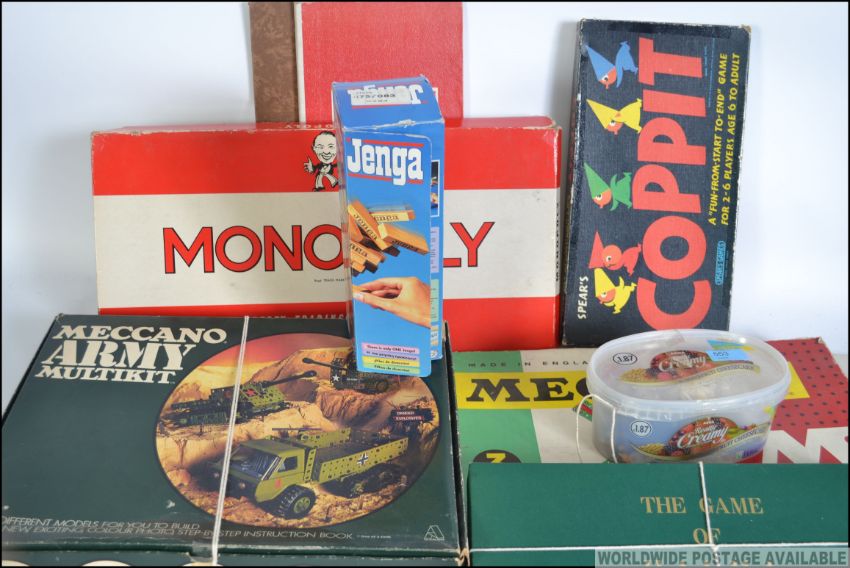 A collection of board games to include an early Monopoly set, Meccano army set, Meccano No3, Halma etc