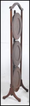 A Victorian mahogany toilet swing mirror of good form together with a 3 tier 1920's oak cake stand having a metamorphic action. Measures: 89cms high x 32cms wide x 26cms deep.