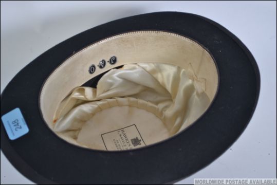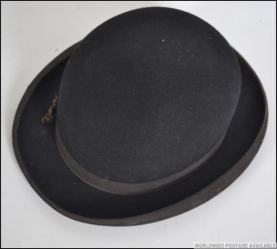 A vintage early 20th century bowler hat by Hawkes & Co of Savile Row London with a silk lining with a leather head band. Made in England size 7.