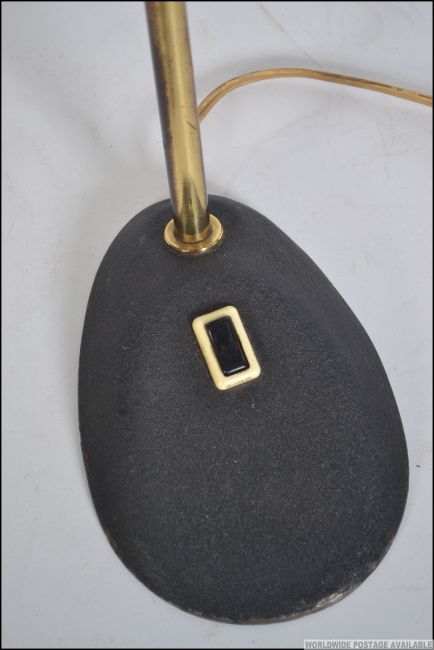 A good 1950's vintage goose neck anglepoise desk lamp with mottled black finish to rectangular shade and base with gilt metal adjustable stem. Measures 45cm high.