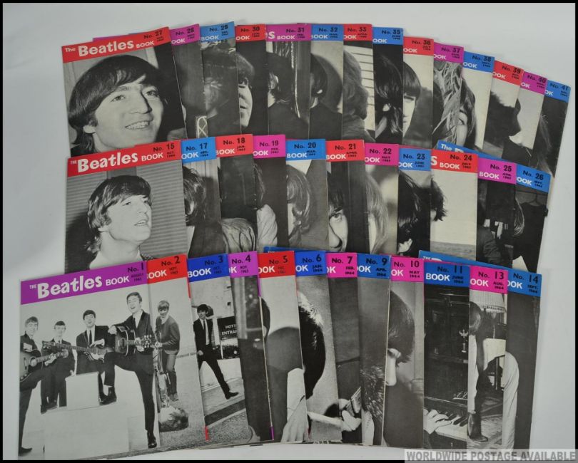 The Beatles : A collection of 37 Monthly magazines, to include number 1, numbers 8, 12, 16, and 34 are missing, over all in very good condition or better. Along with same additional Beatles Monthly magazines