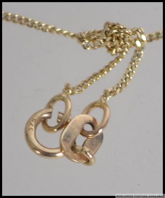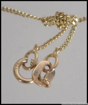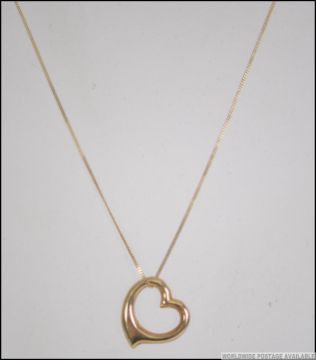 A ladies 9ct gold / 375 marked heart shaped pendant and fine necklace chain with c-shaped clasp