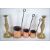 3 vintage copper and brass Cider ladles each with brass plaques together with a pair of brass tall candlesticks
