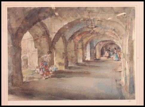William Russell Flint (1880-1969) An unsigned colour print entitled 'Flowers In The Cloisters' 343/850 , Framed and glazed.