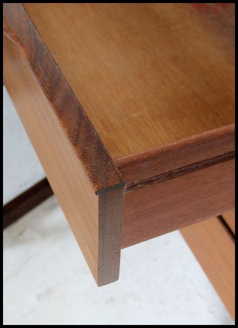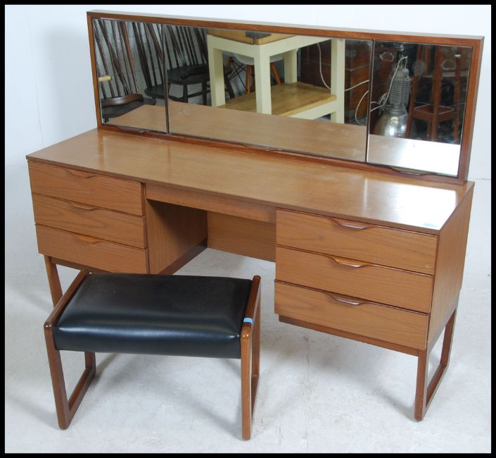 A 1970's Europa teak dressing table with a bank of drawers having long mirror atop in the manner of Mogens Kolo. Measures: 115cms high x 150cms wide x 45cms deep.