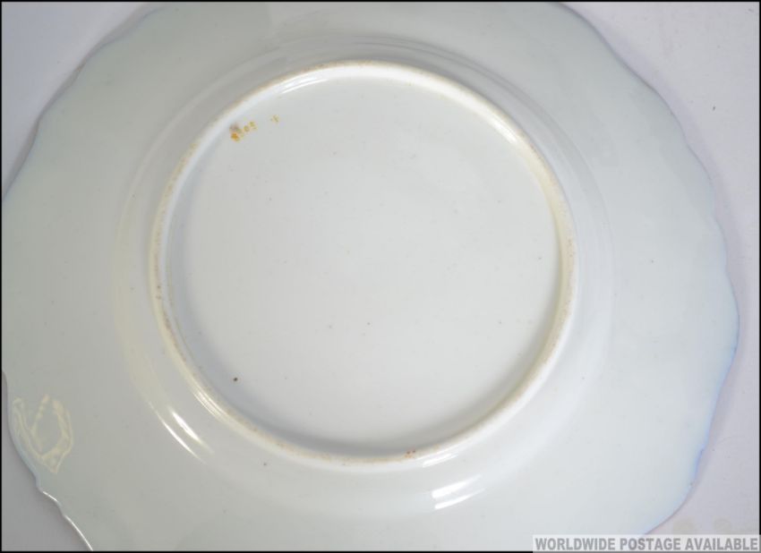 A stunning decorative antique late 19th / early 20th century Victorian patterned dessert service to include Tazza / compote, dishes and plates. No makers marks. Measures 20cms high.