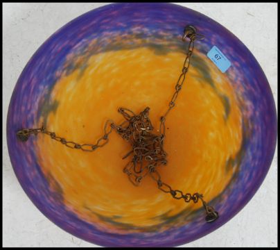 A vintage 20th century Monet style coloured glass shade of conical / circular form. 12cm high x 37cm wide