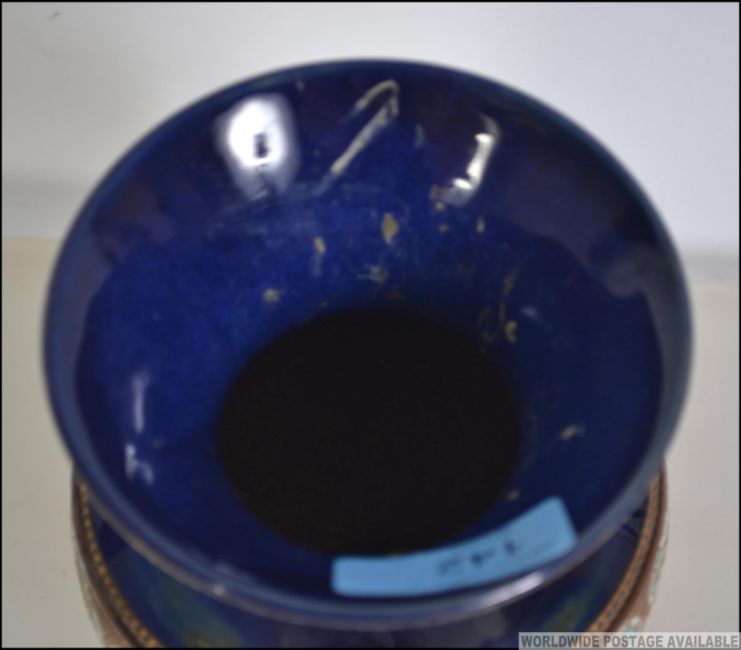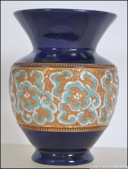 A Slaters Patent Doulton Lambeth stoneware vase in the Art Nouveau style Model No 6848 dating to the early 20th century. Measures 15cm high.