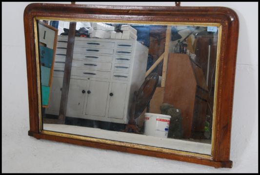 A 19th century large walnut and marquetry tunbridge inlaid overmantel mirror with ceramic bun feet. Measures: 103cms wide x 72cms high.