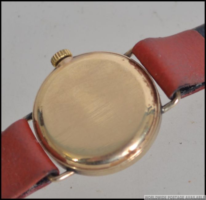 A ladies 9ct gold Omega wristwatch / dress watch. The gold 9ct / 375 London hallmarked case with inset movement having baton numerals and central notation to the dial. 11.8g total weight