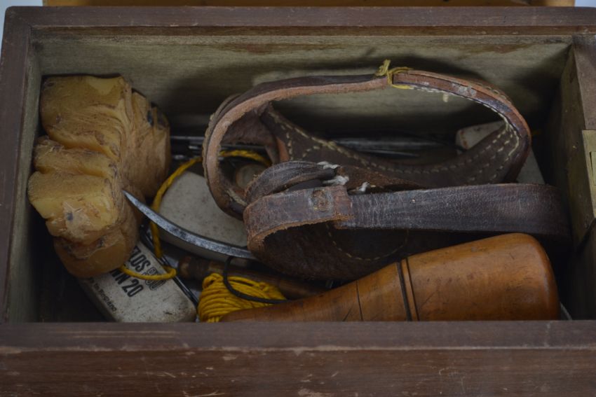 A dealers lot - A collection of curio's to include leather workers sewing tools, two vintage AA car badges, vintage padlocks with keys, money box, cigarette case etc.