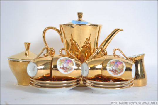 A Bavarian 20th century gilt lustre tea service to include the teapot, cups, plates etc