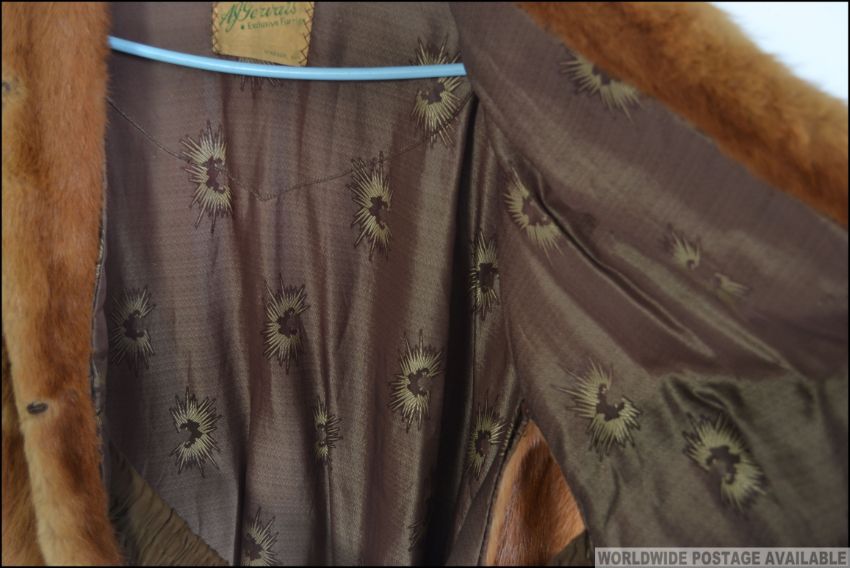A vintage mid century Canadian ( Windsor Ontario )short hip length ladies fur cape, retailed by AJ Gervais. with a stunning floral liner