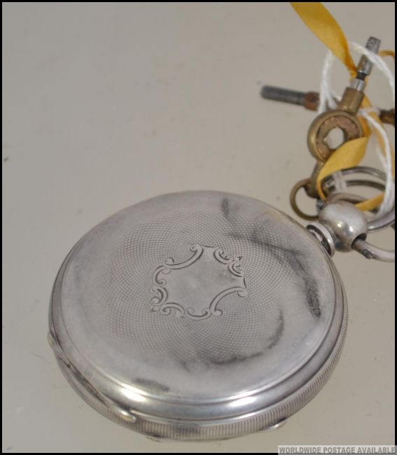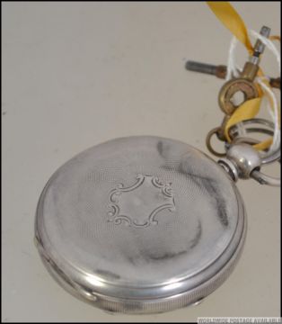 A silver early 20th century Patent lever open faced crown wind pocket watch with faceted hands and roman numeral chapter ring. Birmingham hallmarks for 1882. Weight 93.3g