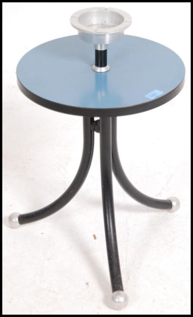A retro / vintage mid 20th century Resistoid atomic ashtray / occasional table raised on a tripod tubular base. Measures: 60cms high x 35cms diameter.