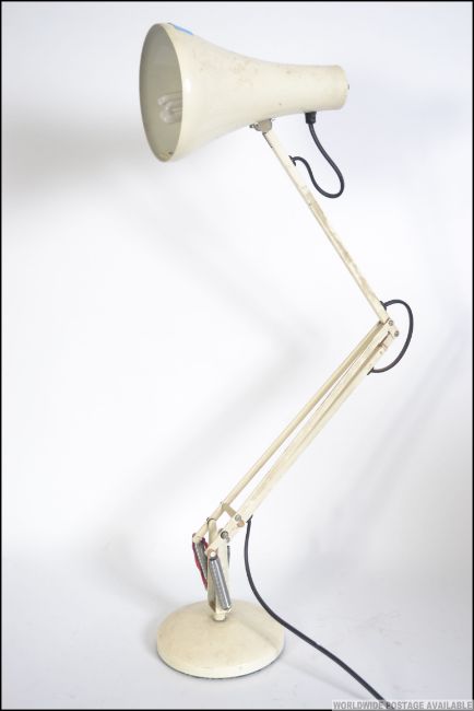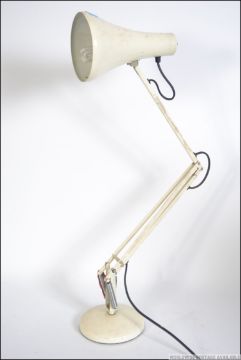 A 1970's Herbert Terry anglepoise desk lamp in the original white paint with circular base and pendant shade Measures 80cms high