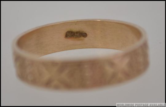 A 9ct gold band ring decorated with Maltese cross, illegible markings to shank Size P.5 / Weight 2.0g