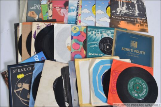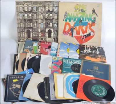A collection of vinyl records to include two Lp's Led Zeppelin IV, Amazing Darts and a quantity of 45rpm vinyl singles dating from the 1960's
