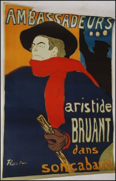 A good Ambassadeurs Aristide Bruant dans son cabaret by Hautrec - Athena Reproduction from the 1970's - 1980's. Measures 61cms x 88cms