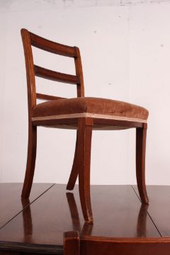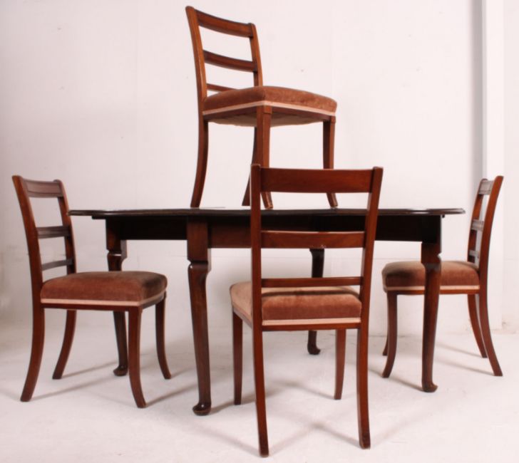 A set of 4 Edwardian mahogany dining chairs together with a 19th century Georgian mahogany pad foot / gate leg dining table. Measures: 73cm x 150cm x 107cm.