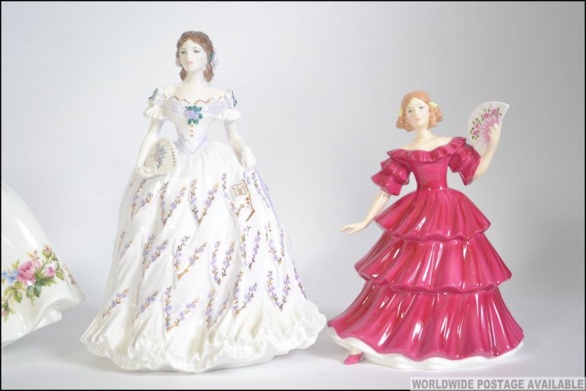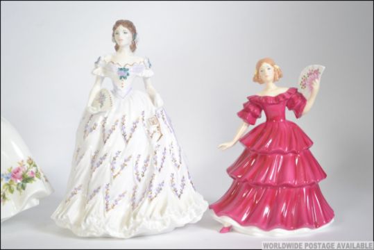 A group of Three Royal Doulton figurines to include Jennifer, Samantha and Sunday Best along with a Royal Worcester figure Measures 21cms high