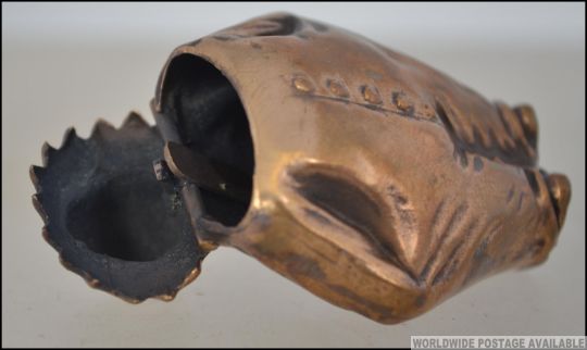 An unusual 20th century brass vesta case in the form of a clown - pierrot. With hinged top. Measures 6cm high. Total weight 38.5g.