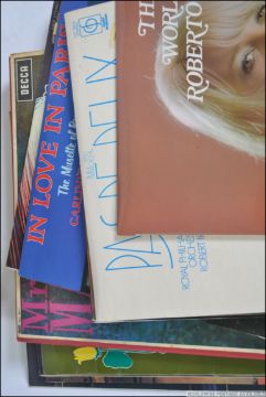 A collection of vintage records of differing genres to include show tunes, classical, easy listening etc