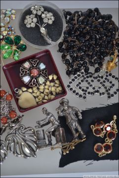 A box of vintage costume jewellery to include brooches, beaded necklaces, earrings etc please see images