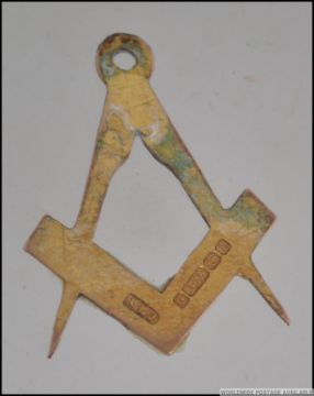 A 9ct gold hallmarked Masonic symbol necklace pendant in the form of a compass and rule. Hallmarked for Birmingham 1908, makers APJ. Total weight 1.7g